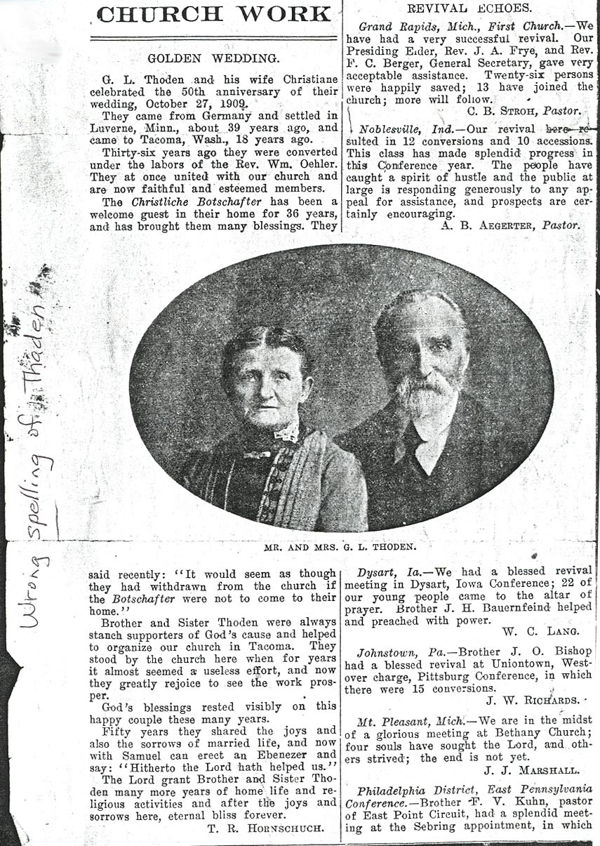 | Our Family Stories Gerhardt Ludwig Thaden and Johanna Christina Amelia Wilkens on the Occasion of Their Fiftieth Wedding Anniversary.
